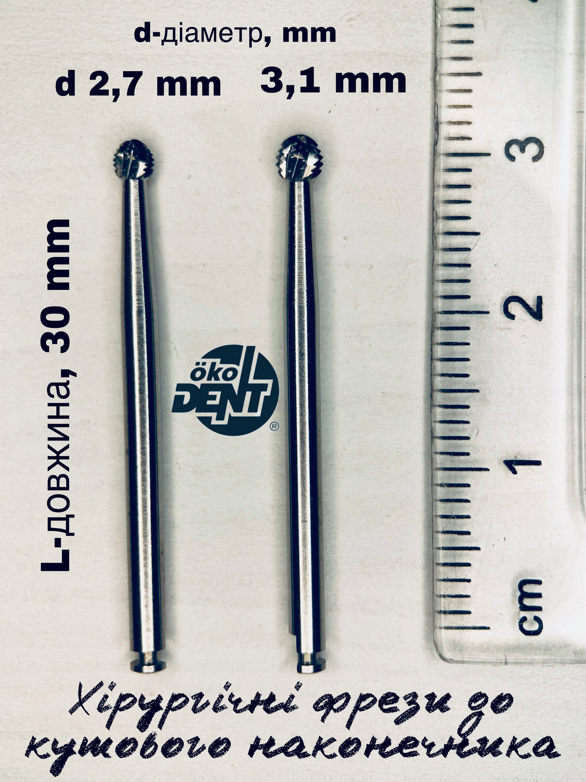 Хірургічна фреза твердосплавна куляста OkoDent з лезами та насічками (HF113Z)