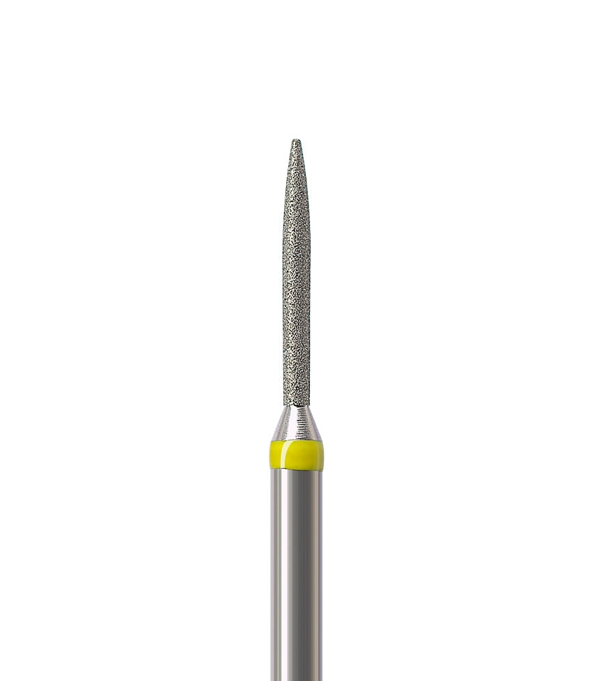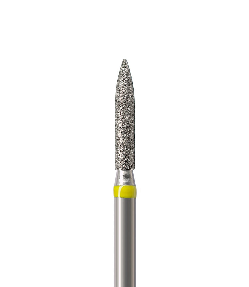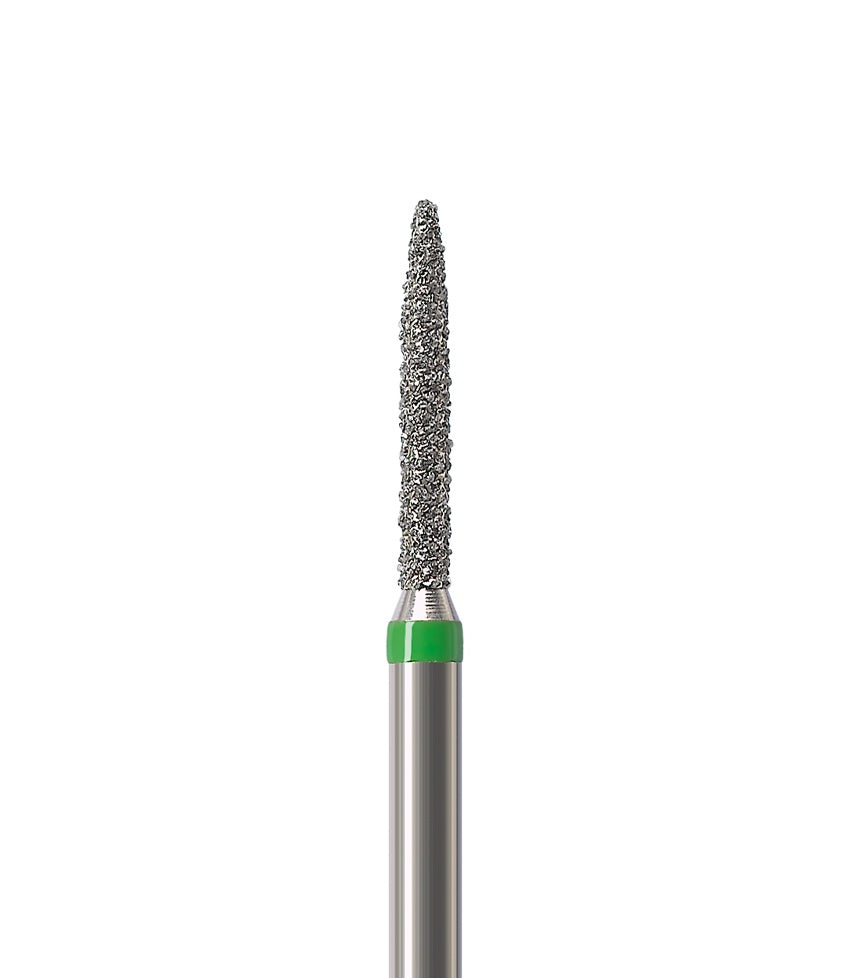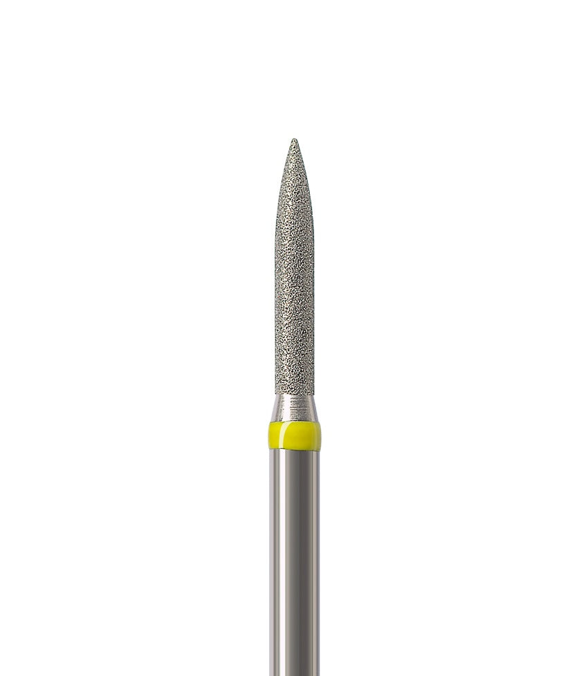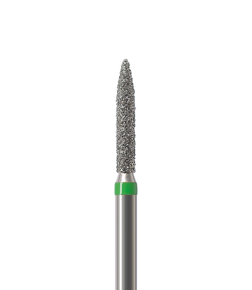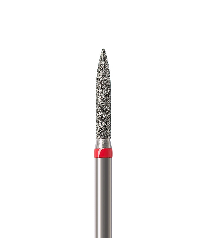 Бор 862 Flame має витягнуту полум’яподібну форму, яка забезпечує точне та делікатне препарування. Ідеально підходить для роботи у важкодоступних зонах, препарування країв порожнин та обробки міжзубних просторів.