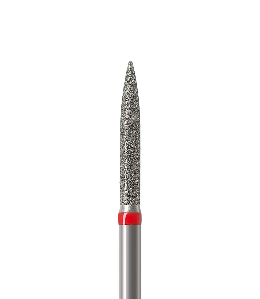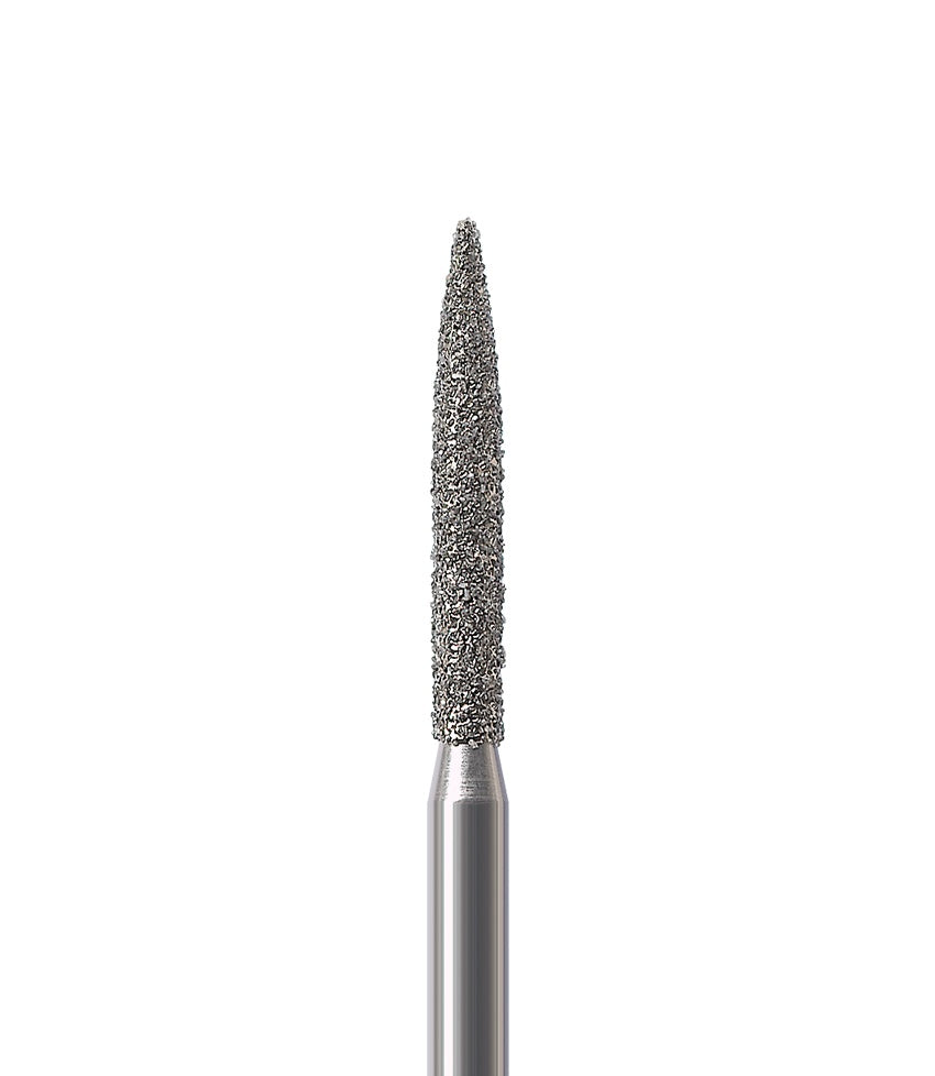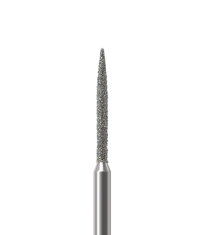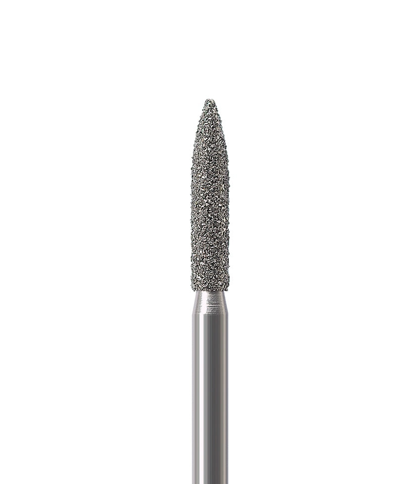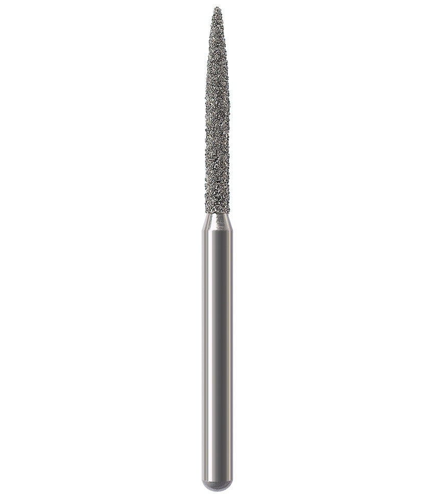 Бор 863 Flame має вузьку видовжену форму, яка дозволяє максимально точно контролювати препарування у важкодоступних ділянках. Підходить для апроксимальних зон, обробки піднебінних та язикових поверхонь, а також фінішної обробки країв.