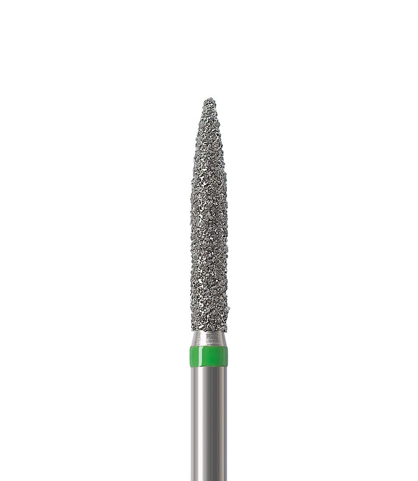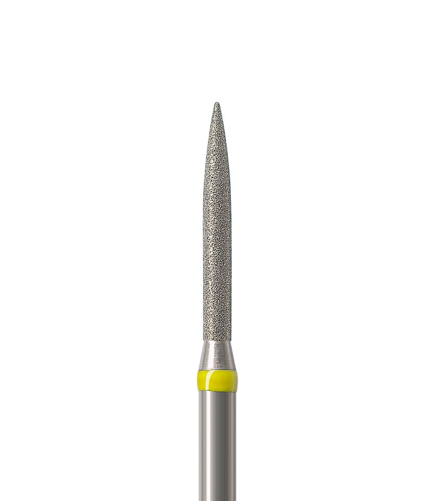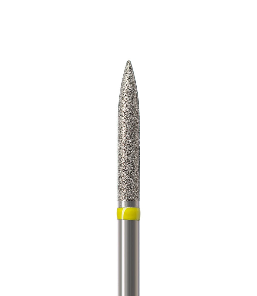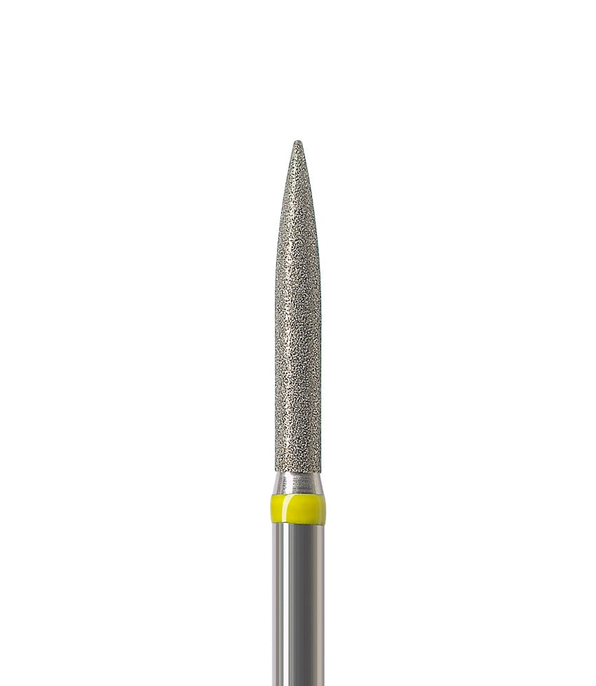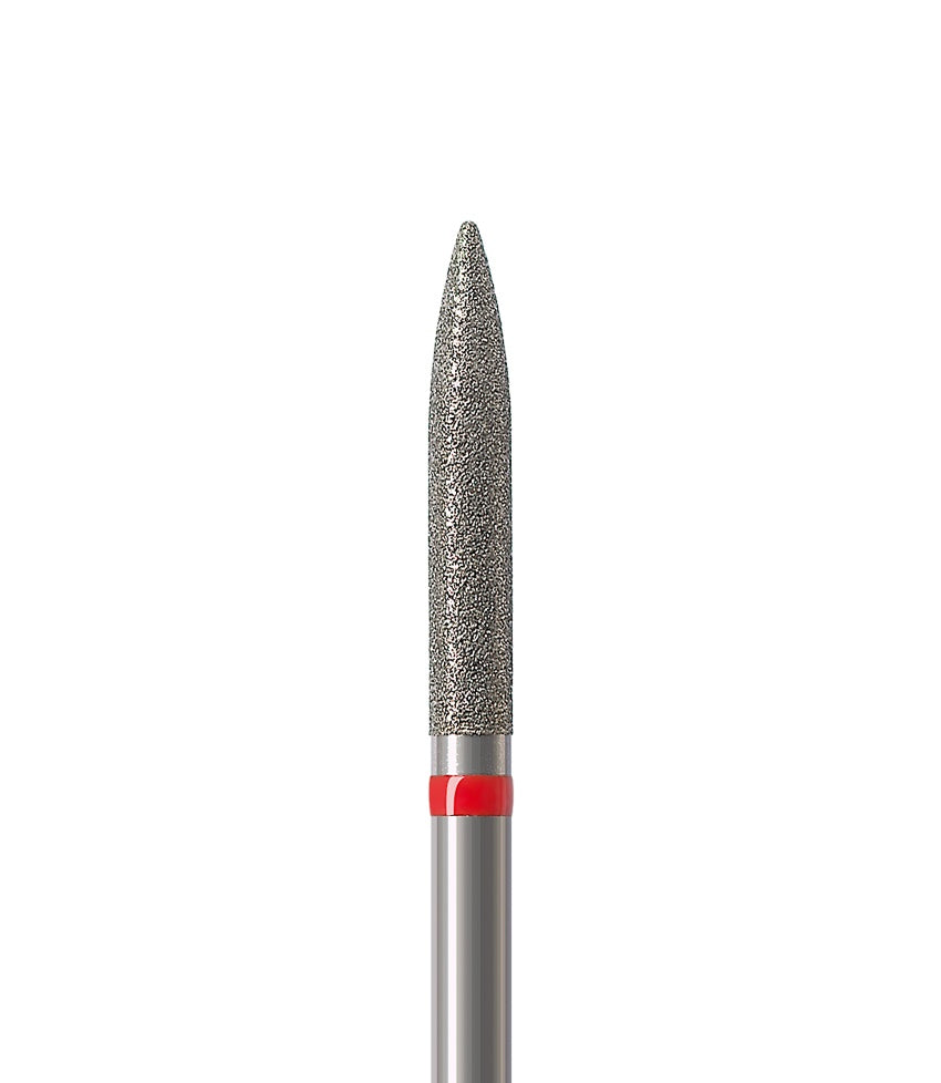 Бор 863 Flame має вузьку видовжену форму, яка дозволяє максимально точно контролювати препарування у важкодоступних ділянках. Підходить для апроксимальних зон, обробки піднебінних та язикових поверхонь, а також фінішної обробки країв.