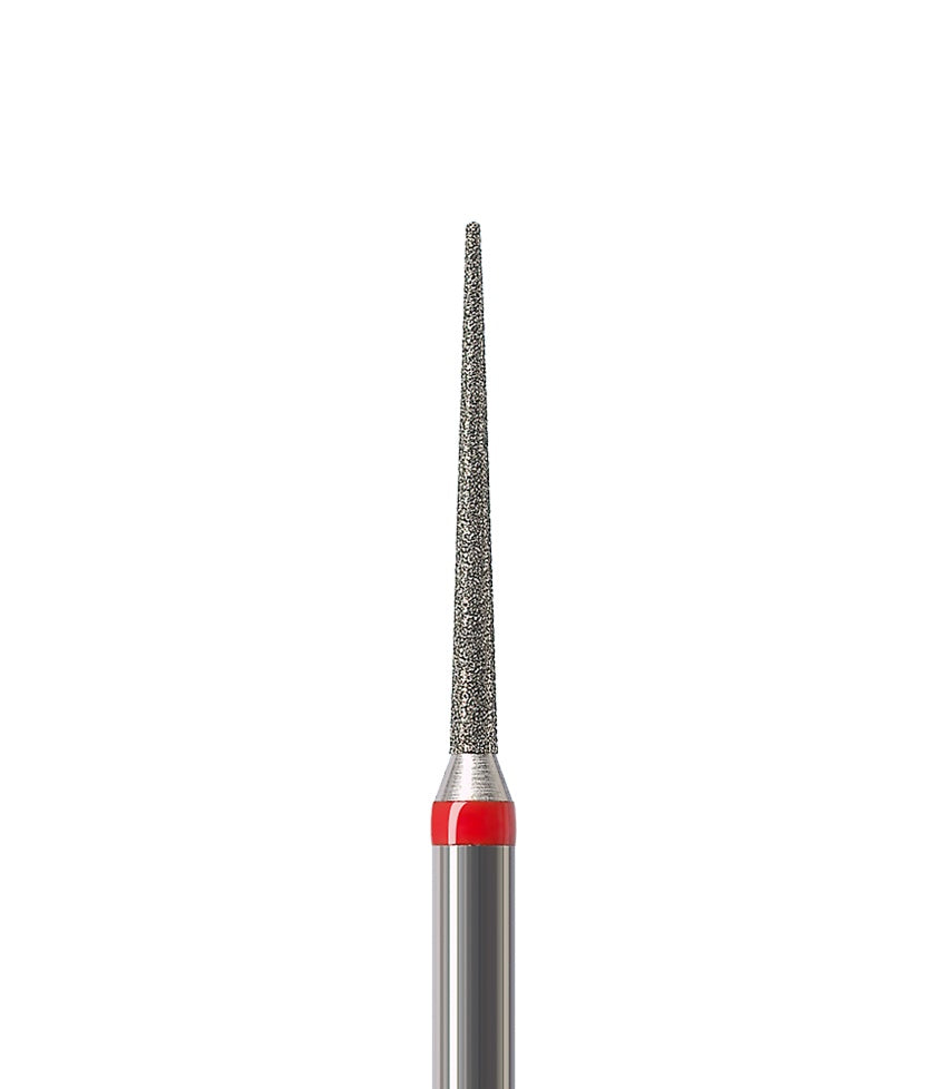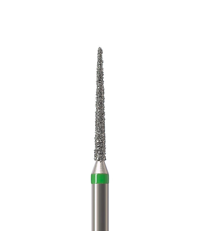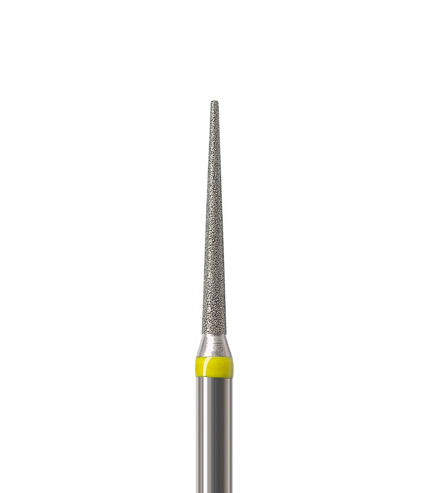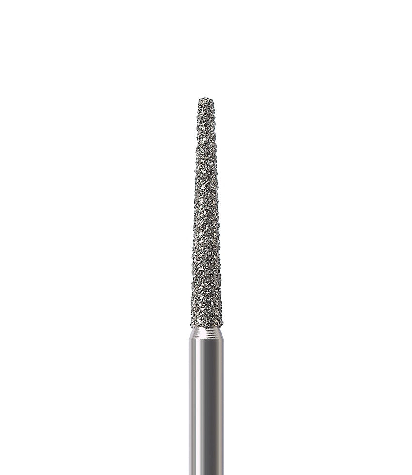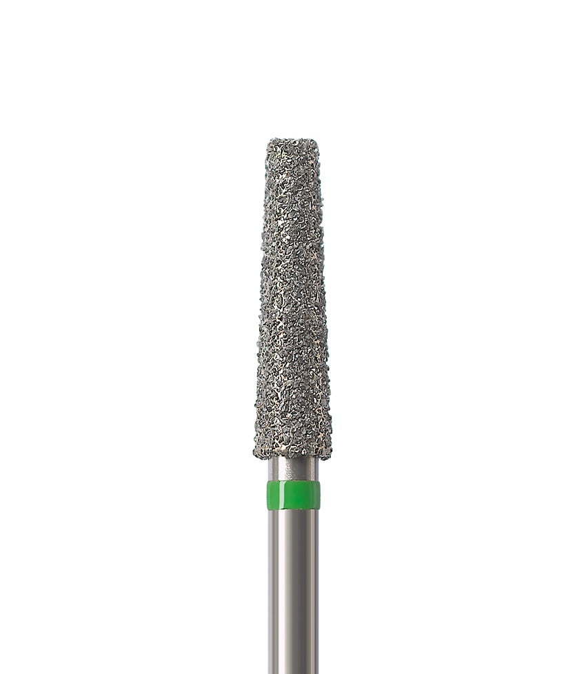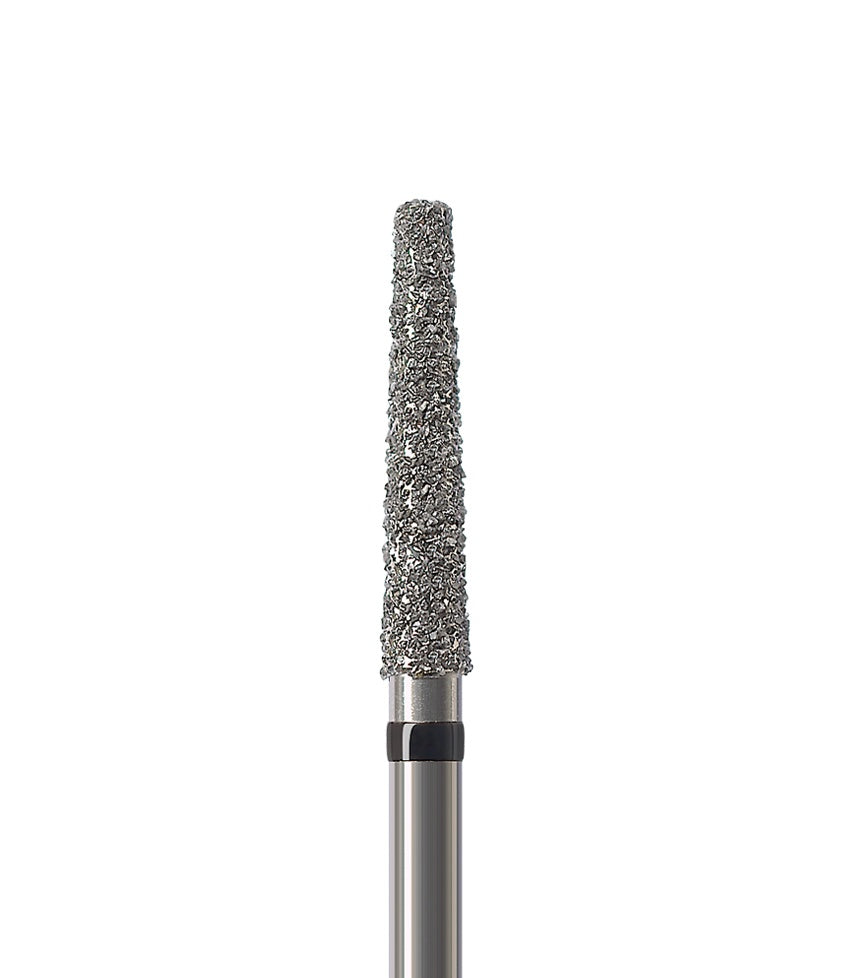 Бор 848 форми Flat End Taper — це конусоподібний алмазний бор з плоским торцем, призначений для точного препарування стінок та дна порожнин, особливо при створенні чітких уступів. Ідеальний для використання при підготовці під коронки та мостовидні конструкції.